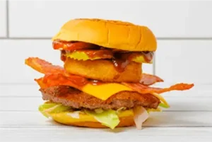 Housemade quinoa bean patty • swiss • lettuce • tomato • pickles • raw onion • sriracha mayo